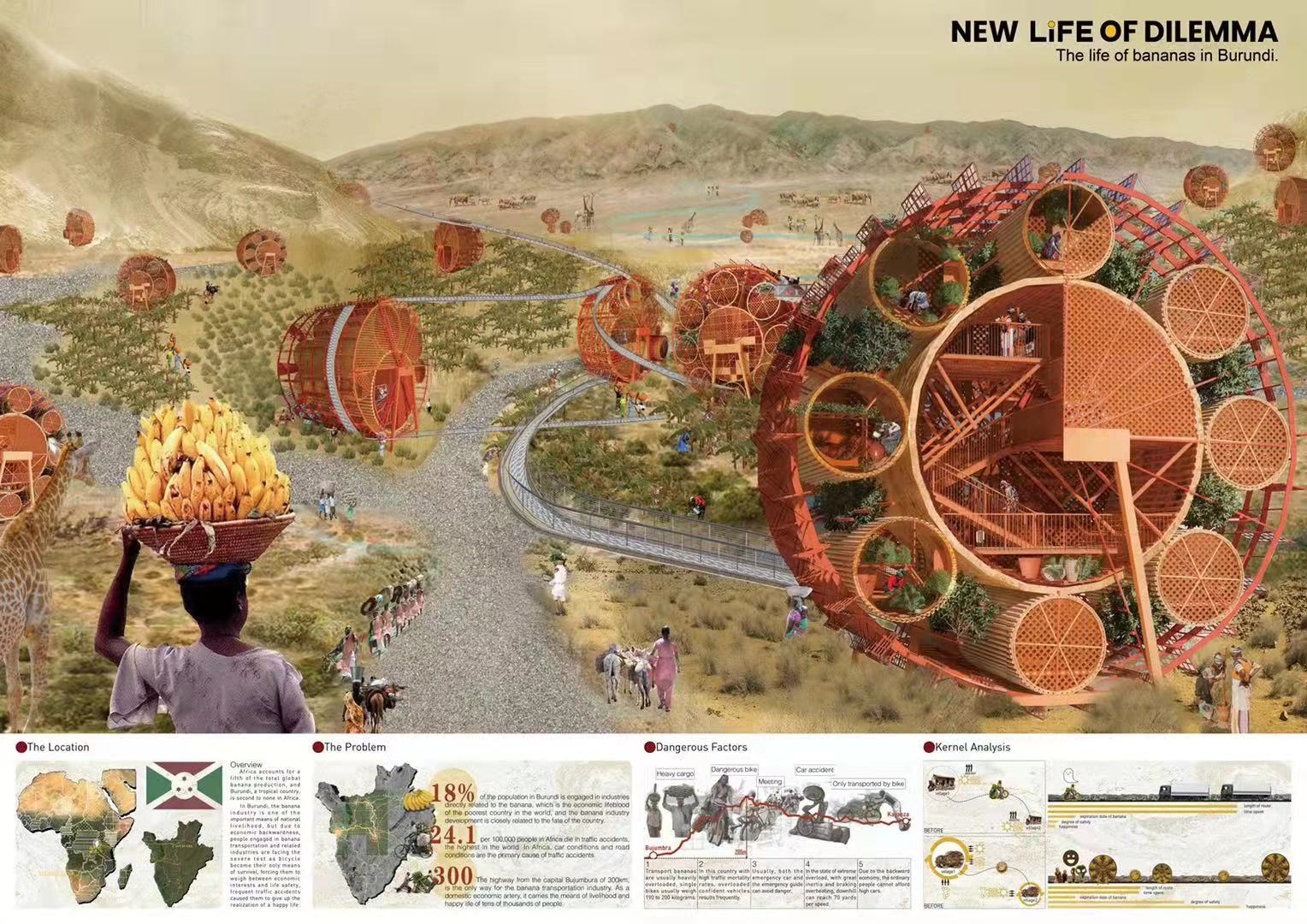 无需穿越危险的公路,快乐的运送香蕉,是本方案打破布隆迪乡村困境的开始。而其中诞生的模式与潜能,则是本方案无限的“新生”。