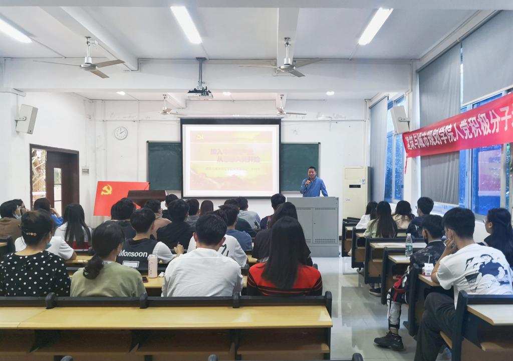 随后,本期党课第一次理论学习讲座正式开始。学院党委副书记李晓伟以《加入中国共产党,从思想入党开始》为题,向全体学员做了一堂生动的党课。李晓伟副书记结合一些生动的案例,从为什么要加入中国共产党、中国共产党的初心使命和如何具备入党标准等三个方面对积极分子进行入党教育,勉励学员们要从党课学习中更深入地了解中国共产党,从思想入党开始,不断提升自己,以实际的行动积极向党组织靠拢。
