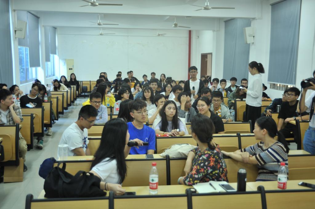 学生林洁娜主要分享如何深挖课程调研,把调研的系列成果纳入到创新创业项目的运营之中,黄莉雯则从一个幼儿园的设计作业出发,阐释具体调研方法和设计方案的合成运用,张曦分享了工作坊设计方案,和在场师生一同打开视野,探讨公共空间的多元利用。老师点评环节,张老师首先回应了交流环节各位学生提出的具体专业问题,并建议同学们要始终记得将建筑设计的理念和功能融合一体,要把自己的审美涵化到大众的审美之中。范老师除了回答学生们提出的专业问题外,建议同学们要用发展的眼光看待世界,用规划的思想统一学习中的各个环节,更鼓励两院加强合作,促进交流,把专业的成果应用于各项创新创业的活动之中。