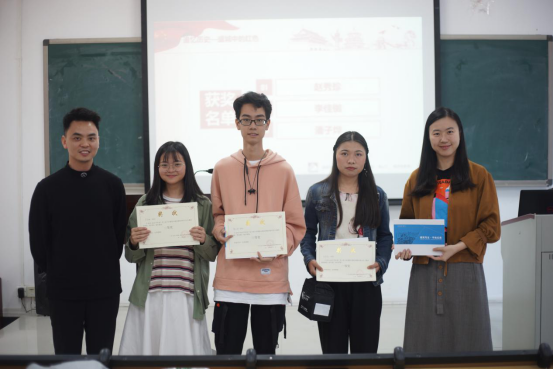 完毕后,进行写生大赛颁奖典礼。绘画彩色组获奖选手分别是一等奖的18级建筑1班的苏小岚同学、二等奖的17级建筑学2班的简颖诗同学、三等奖的17级风景园林班的曾靖怡同学;绘画黑白组获奖的是一等奖的16级美术学1班的赵秀珍同学、二等奖的16级视觉传达2班的李佳铷同学、三等奖的18级建筑学2班的潘子烨同学;摄影组的获奖名单是一等奖的18级材料成型及控制工程3班的高增光同学、二等奖的18级建筑学1班的曾薇同学、三等奖的机械类专业13班的黄千博同学和17级风景园林1班的蔡宇斌同学。颁奖之后,在场的嘉宾老师们、参赛选手们以及相关的工作人员合影留恋。