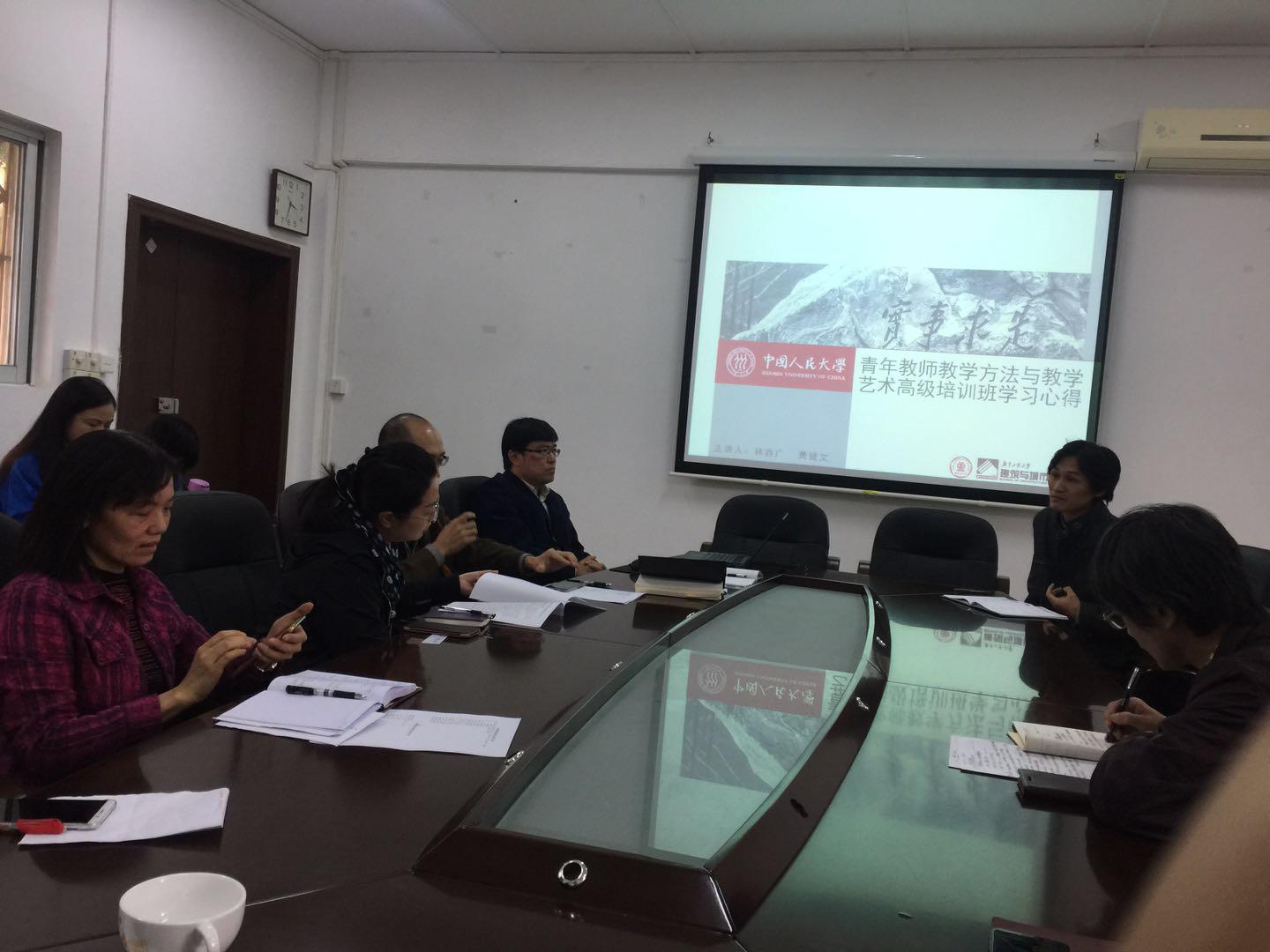 2017年11月21日下午,第二期青年教师教学方法与教学艺术高级培训班的研修分享报告会在311会议室召开,建筑系林垚广老师和黄健文老师汇报了他们前往中国人民大学参加本期培训班的研修经历与学习心得。