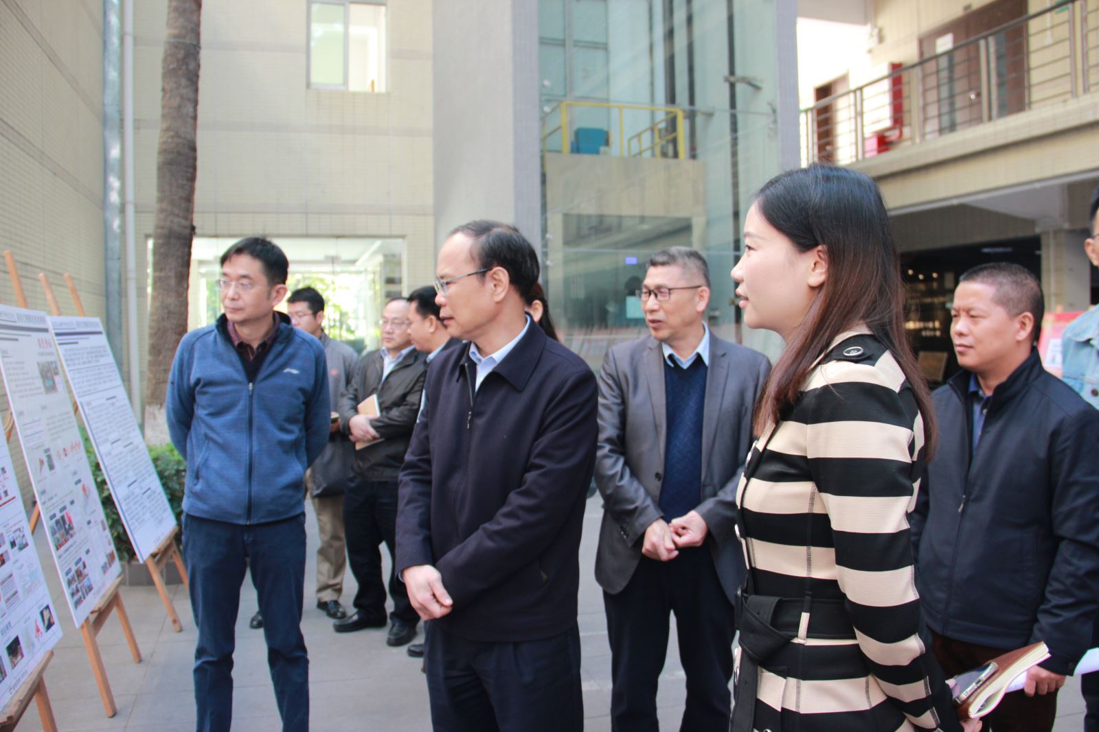 会前,邱校长一行参观了学院链条式赛事培育成果展、“绘红色建筑、讲党史历程”成果展。