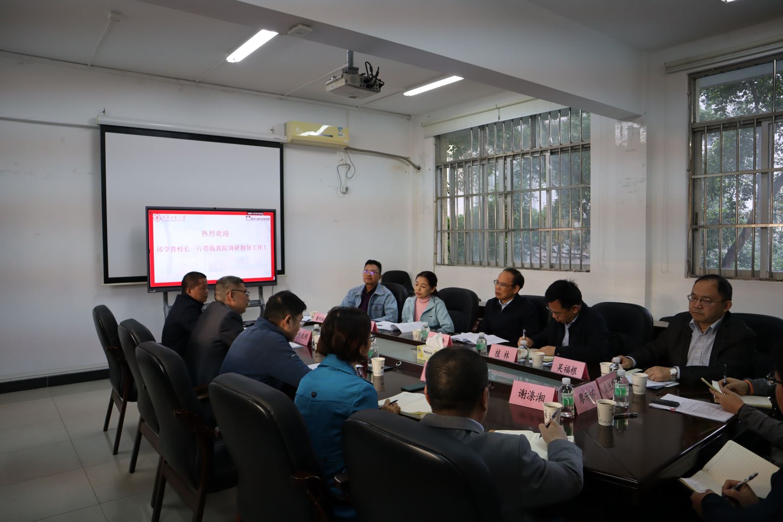 调研学院发展情况,指导学院下一阶段工作开展。党委办公室、校长办公室主任植林,教务处处长李丽娟,研究生院常务副院长吴福根,后勤管理处副处长黄明枫等同志、学院领导班子成员、青年教师代表共同参加调研交流。