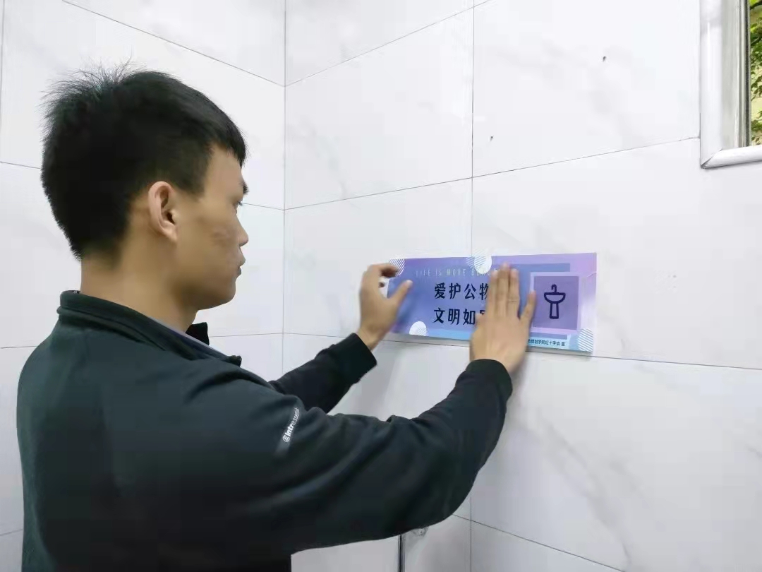 打造文明卫生环境,自觉维护公共卫生。秉承红会“人道、博爱、奉献”的精神。为了提醒同学们在使用完卫生间时养成文明习惯,打造干净整洁的环境,3月21号和23号,在贾朝强老师的带领下,我们在建院男生女生宿舍楼以及专教的公共卫生间开展了暖心活动。