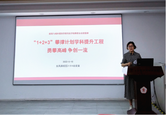 学院副院长江海燕传达了学校推进“1+2+3”攀撑计划学科提升工程专题调研反馈会的主要内容和会议精神,向大家再次详细地介绍了学校“1+2+3”攀撑计划的背景、重点建设任务、建设目标以及攀撑计划启动一年以来学校的推进情况。江院长分析了学院目前的现状和存在的问题,从学院“1+2+3”攀撑计划总体建设目标、重点工作等几个方面强调了接下来学院精准推进落实攀撑计划目标任务的方向、突破点和建设措施。