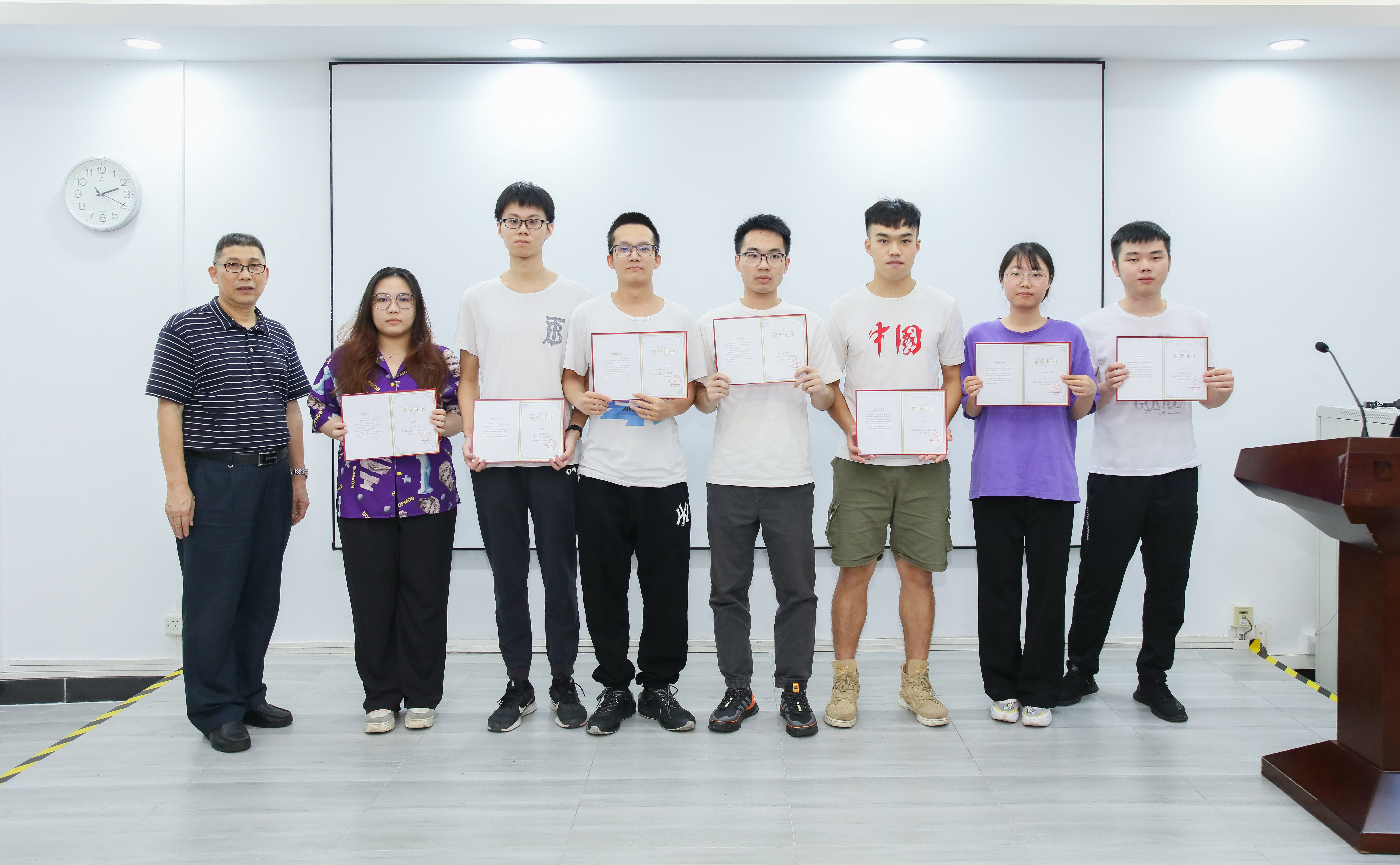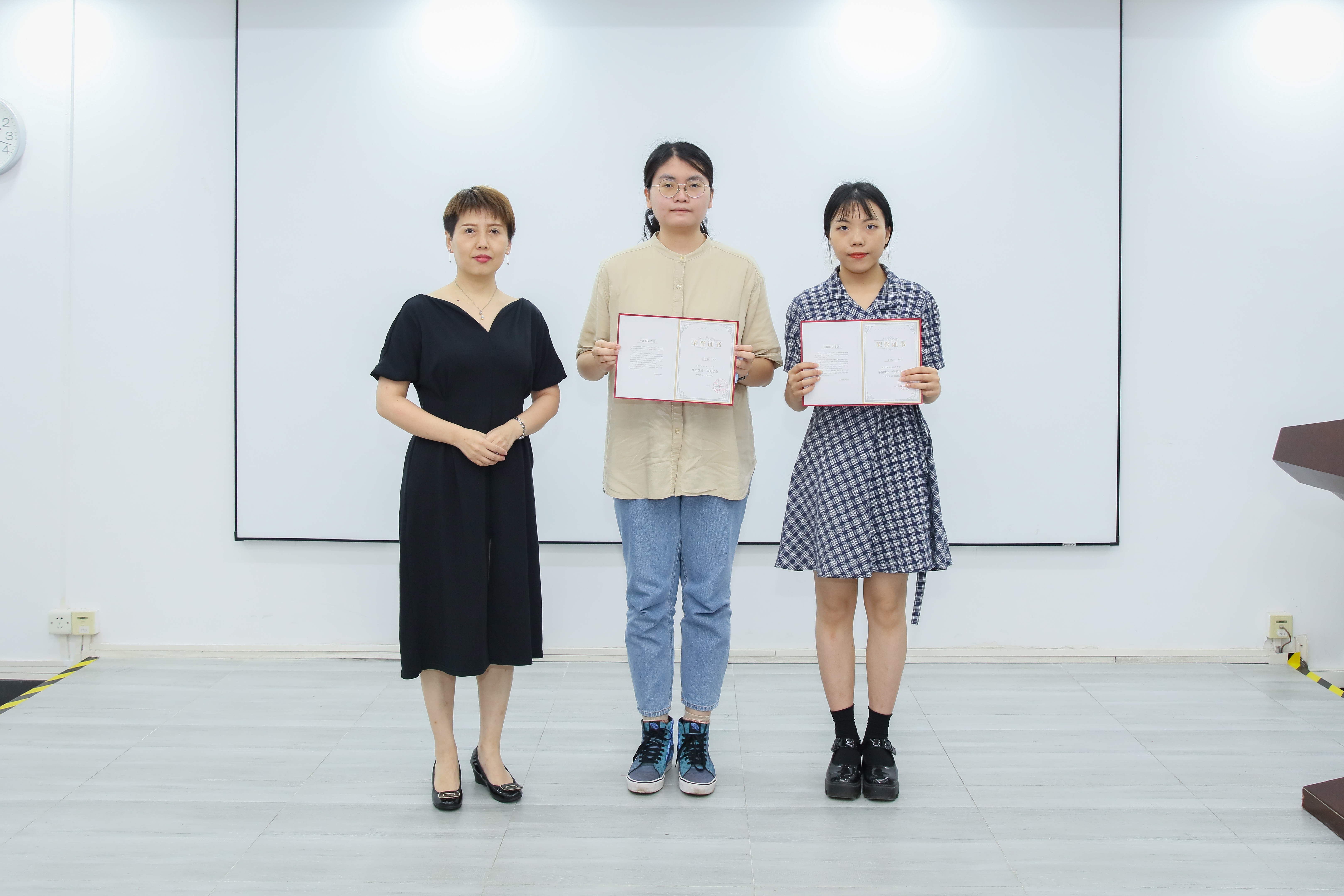李晓伟宣读华阳奖学金获奖名单,本次共33名学生分别荣获“优秀学生一等奖学金”,“优秀学生二等奖学金“,“优秀学生二等奖学金“和“优秀学生干部奖学金“,领导、嘉宾为获奖优秀学生颁发证书并合影留念。