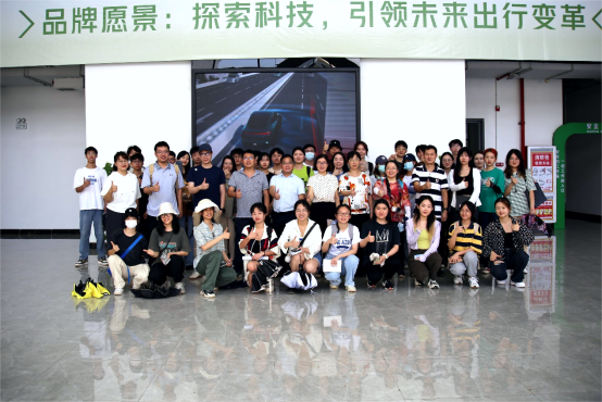 参与调研活动的领导与师生在小鹏汽车产业园合影留念。