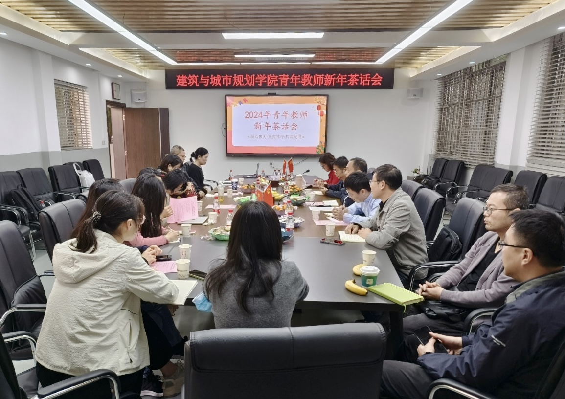 青年教师新年茶话会”。本次活动以“凝心聚力·务实笃行·共谋发展”为茶话主题,学院党委书记王伟文、院长蔡云楠、副院长江海燕作为特邀嘉宾参会,学院近20名青年教师参与本次活动,新年茶话会由院长助理马世发老师主持。