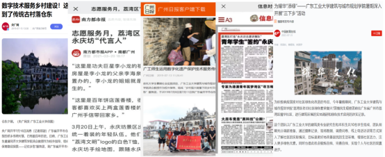 把志愿服务作为学生专业实践教育的重要内容纳入人才培养全过程,打造“爱的建筑师”专业融合式志愿服务品牌,推动学雷锋活动融入日常,产生了良好的社会影响。师生成果获得第六届中国青年志愿服务项目大赛全国铜奖;2023广东青年大学生“百千万工程”突击队省级优秀示范项目、省级重点团队;2022年“益苗计划”--广东志愿服务组织成长扶持行动暨志愿服务项目大赛省级示范项目、2023年省级持续扶持项目;2023年越秀区新时代文明实践志愿服务优胜项目等多项国家级、省市级荣誉。师生志愿服务事迹被学习强国平台、广州日报、南方都市报、中国报道等多家媒体报道宣传,受到了社会各界的广泛好评。