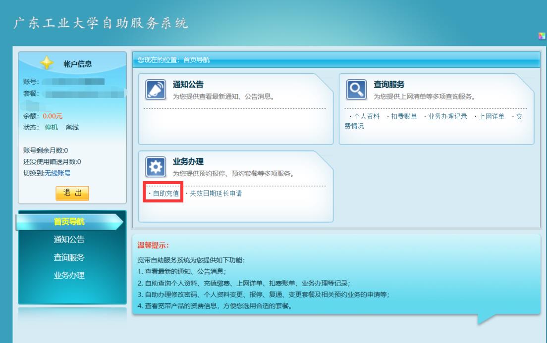 校园网在线自助开户及续费业务操作说明