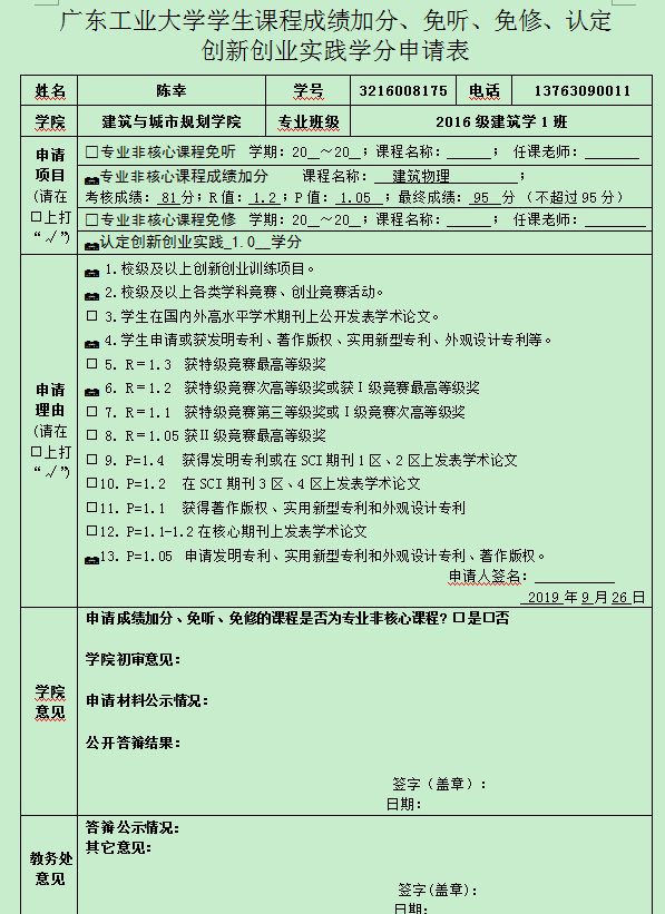根据教务处《关于做好2019-2020学年度第一学期本科生申请创新创业实践学分认定及课程加分、免修等工作的通知》的精神,69书吧 对照《69书吧 创新创业实践学分认定及课程免修实施暂行办法》对学生递交的申请进行初审,现公示如下。