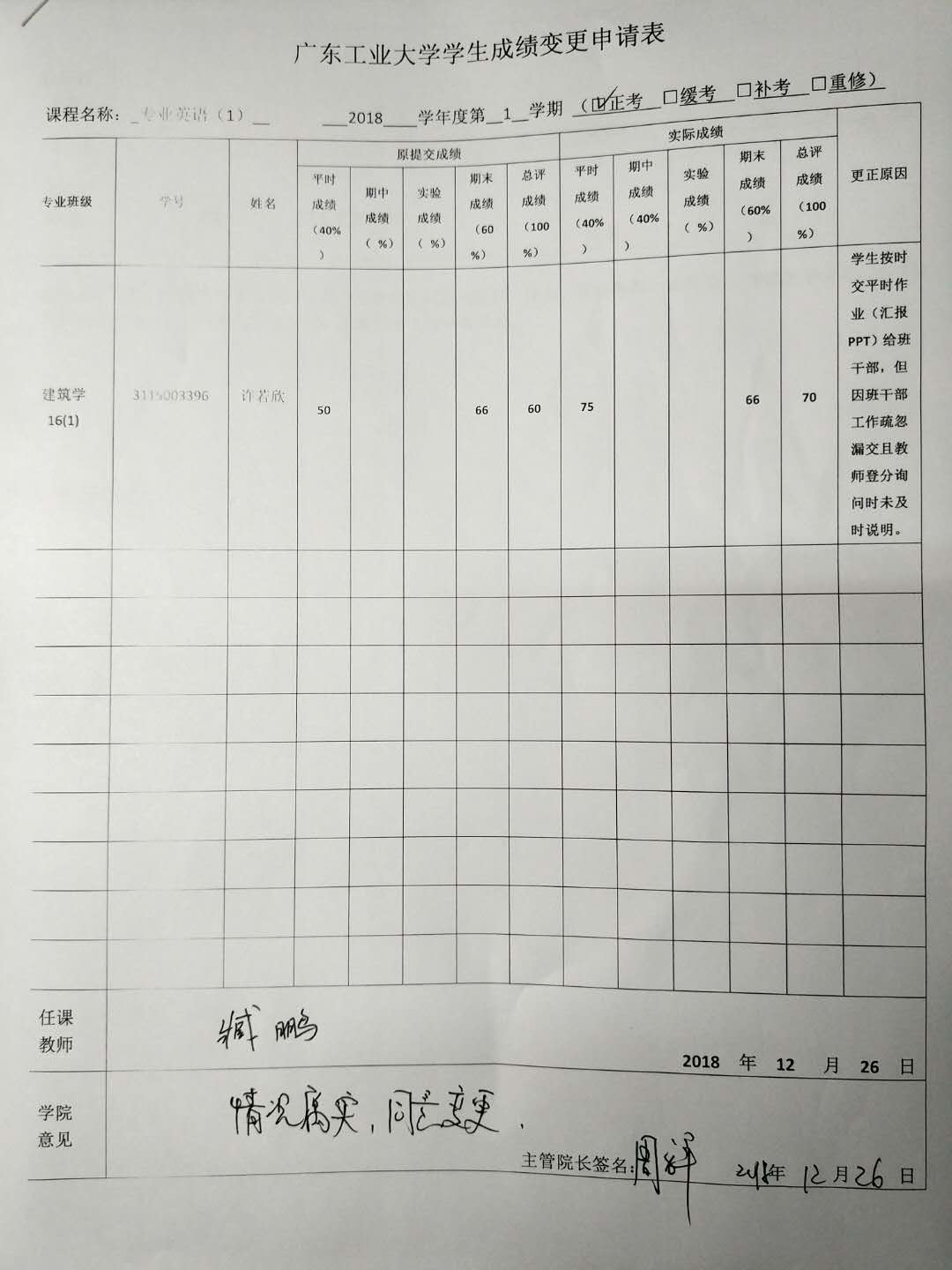 备注:公示期内,如对上述成绩变更有异议,请与学院教务办联系(电话:37627592,地址:东风路校区1-302)