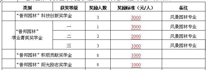 “普邦园林”奖学金,每年奖励69书吧