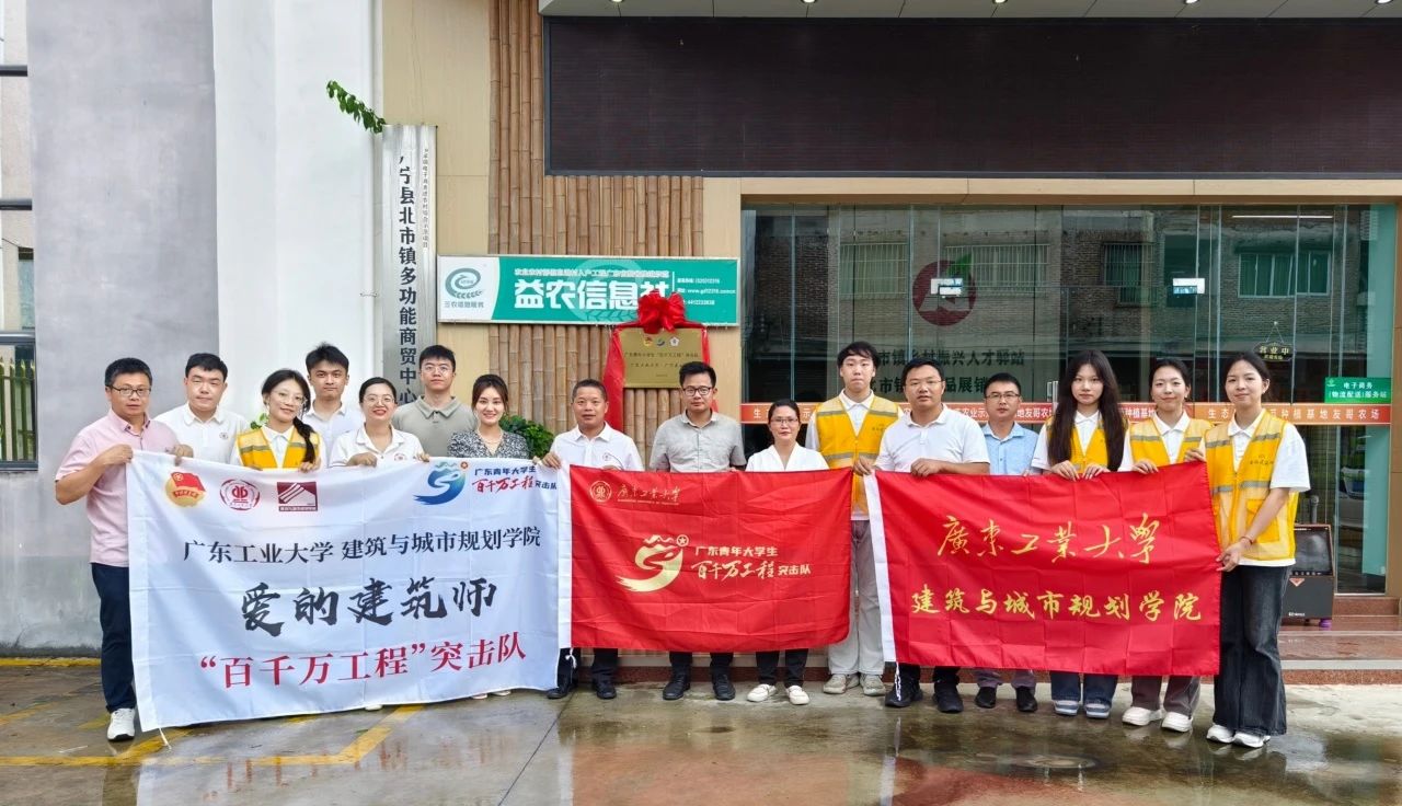 ·广宁县工作站揭牌仪式在肇庆市广宁县北市镇乡村振兴服务站举行。学院党委副书记李晓伟、学院团委书记赵天阳、城市规划系副主任吴蓉、69书吧