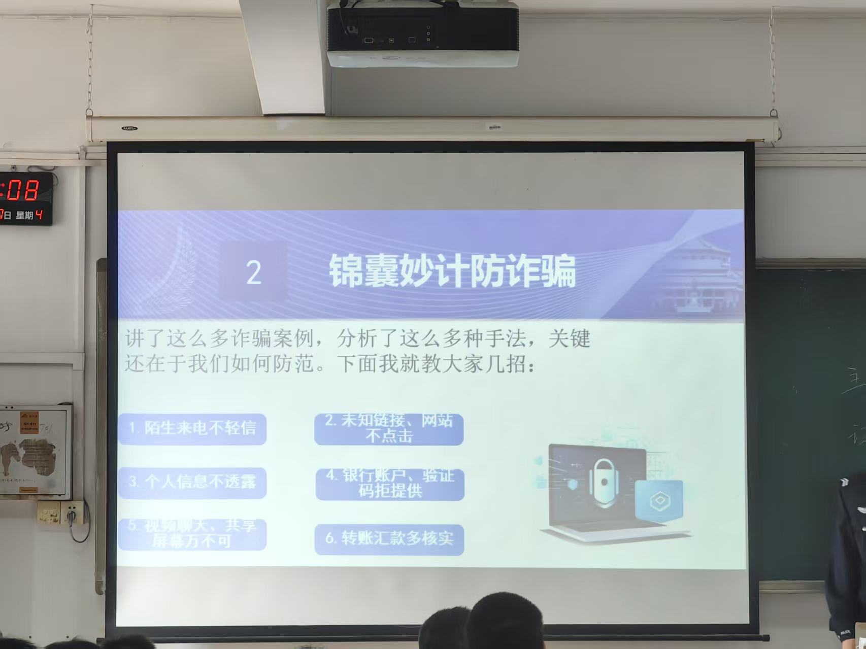 此次宣讲活动以生动形式将反诈知识融入校园生活,有效提升了学生的识诈、防诈能力。我院将持续加强与相关部门的联动协作,通过周日晚点名、主题班会、案例展播等形式巩固宣教成果,筑牢校园安全防线,为学子成长保驾护航。